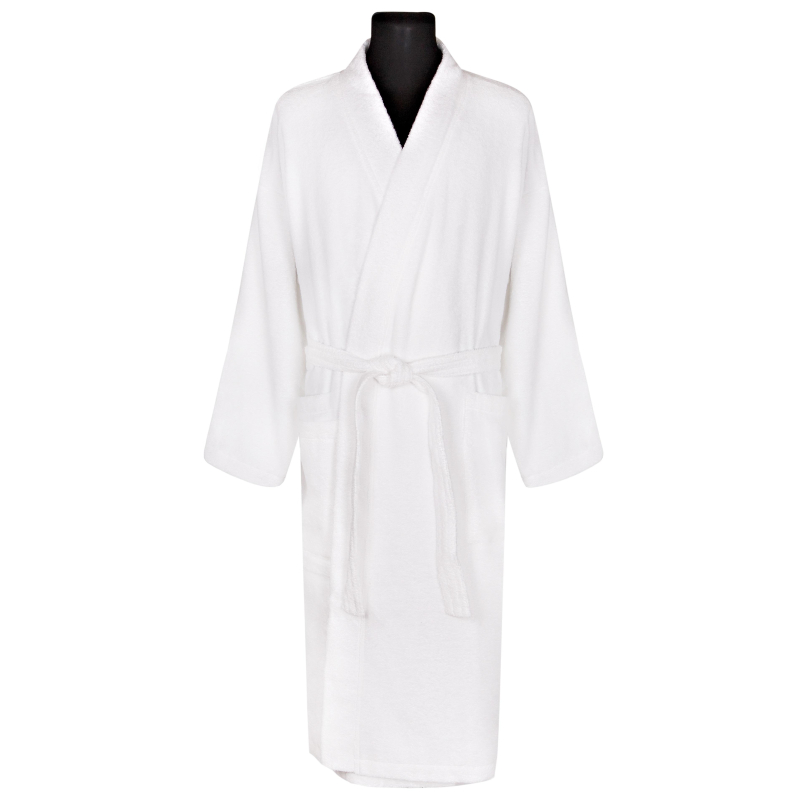 Халат махровый размер 60-64 (4XL) белый. Махра из натурального хлопка износоустойчива, воздухопроницаема и приятна к телу. Белоснежный цвет - это символ чистоты и свежести, поэтому такое изделие незаменимо для уютных гостиниц и СПА-салонов, которые привыкли держать высокую марку. Размер халата: 60-64 (4XL). Плотность ткани: 400 г/кв.м. Упаковка - пакет.