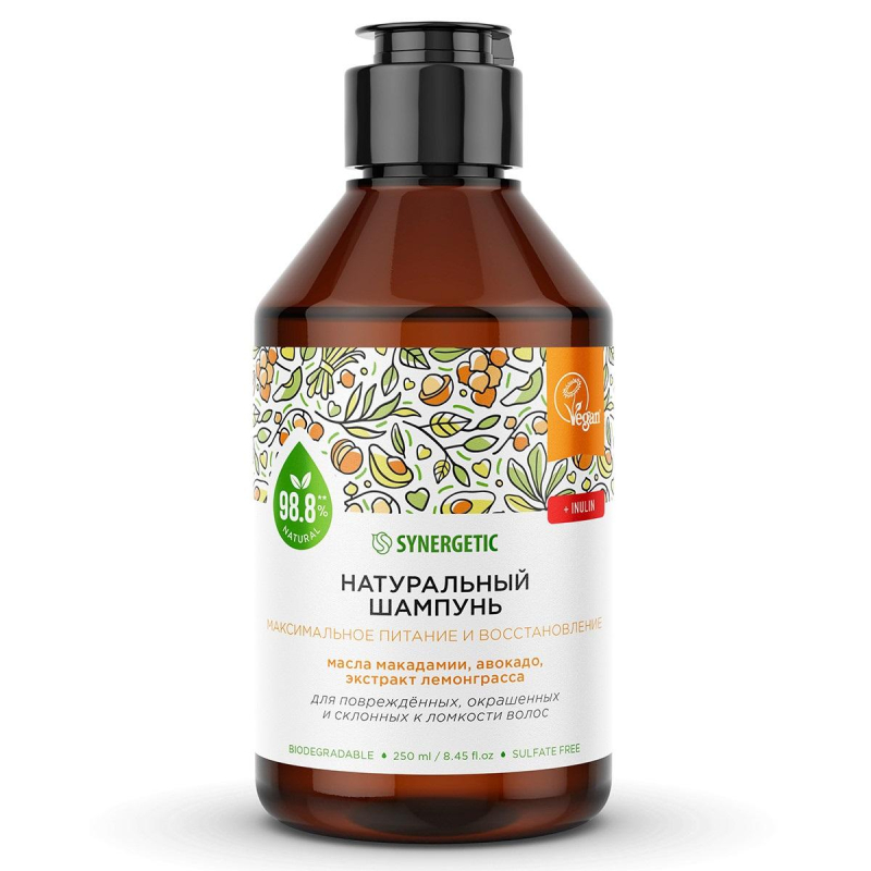 Шампунь Synergetic "Максимальное питание и восстановление" натуральный, бессульфатный, 250 мл. Подходит для ухода за окрашенными волосами. Бессульфатная формула шампуня обеспечивает деликатное очищение, эффективный уход за волосами и защиту кожи головы. Комплекс масел макадамии, тыквенных семечек и авокадо восстанавливает и питает волосы по всей длине, а инновационный компонент FiberHance укрепляет их и стимулирует формирование кератиновых волокон. Способ применения: нанести небольшое количество шампуня на влажные волосы, хорошо вспенить и тщательно смыть водой. При необходимости повторить процедуру. Возможно появление естественного осадка натурального происхождения и незначительное изменение цвета шампуня, не влияющие на его качество и свойства. Состав: Aqua; Lauryl Glucoside; Sodium Lauroyl Methyl Isethionate; Cocamidopropyl Betaine; Candida Bombicola/Glucose/Methyl Rapeseedate Ferment; Lauroyl/Myristoyl Methyl Glucamide; Inulin (растительный пребиотик); Macadamia Seed Oil Polyglyceryl-4 Esters (масло макадамии); Pumpkin Seed Oil Polyglyceryl-4 Esters (масло тыквенных семечек); Olive Oil Polyglyceryl-4 Esters (масло оливы); Cymbopogon Citratus Extract (экстракт лемонграсса); Plumeria Alba Flower Extract (экстракт франжипани); Glycerin; Coco Glucoside; Glyceryl Oleate; Sodium Cocoyl Isethionate; Triticum Vulgare (Wheat) Protein; Saccharide Isomerate; Hydroxypropylgluconamide; Hydroxypropylammonium Gluconate; Glycol Distearate; Glyceryl Stearate; Persea Gratissima Oil (масло авокадо); Guar Hydroxypropyltrimonium Chloride; Sodium Chloride; Sodium Benzoate; Parfum; Tetrasodium Glutamate Diacetate; Sodium Citrate. Условия хранения: хранить при температуре от +5 до +25 °С вдали от нагревательных приборов и огня. Не допускается хранение под непосредственным воздействием солнечного света. Срок годности: 36 месяцев с даты производства при соблюдении условий хранения.