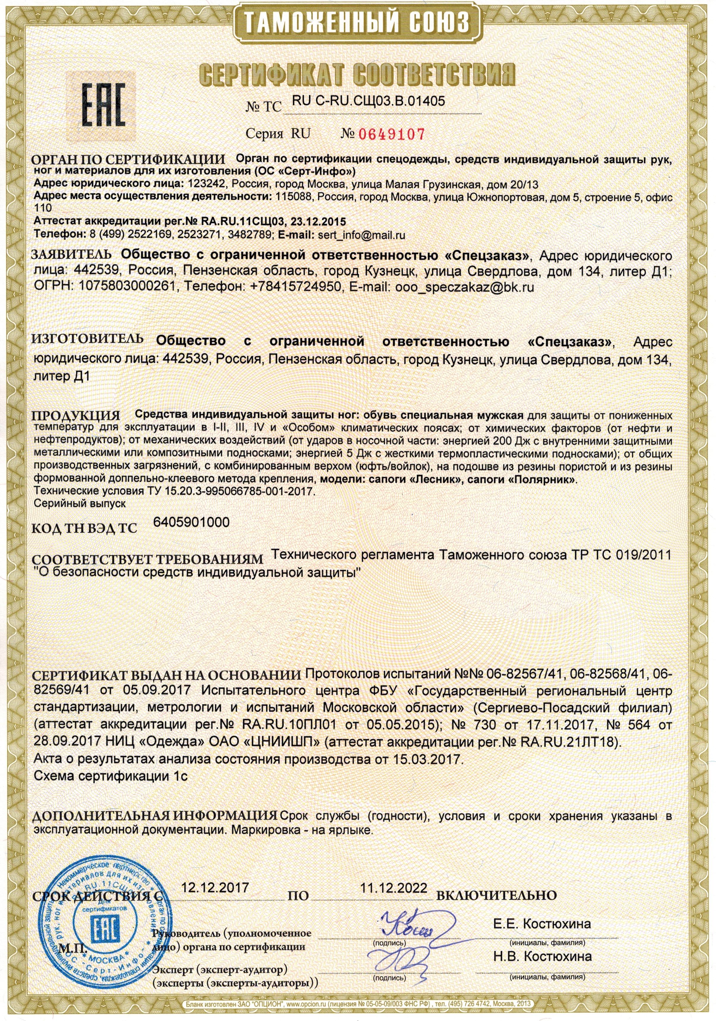 Сертификат на товар - Сапоги утепленные Форест серые/черные с термопластичным подноском размер 46
