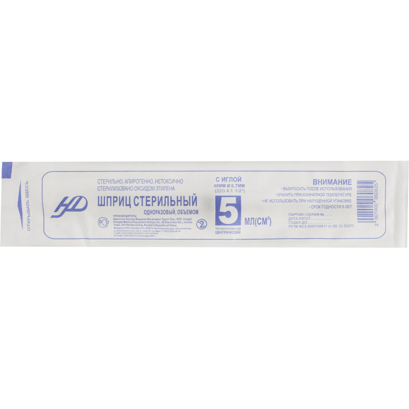 Шприц 3-комп. однораз. 5мл игла 22G (0,7x40) ЛуерСлип 100шт/уп