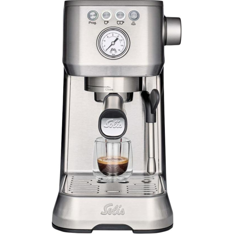 Кофеварка рожковая SOLIS 1170 - это возможность взбодриться утром чашечкой крепкого эспрессо, а в течение дня радовать себя и своих близких вкуснейшим капучино и нежным латте. Компактный прибор мощностью 1800 Вт представлен в стильном цветовом оформлении, благодаря которому он будет хорошо смотреться в обстановке любой кухни. Несмотря на скромные размеры, за один цикл работы устройство способно сварить сразу две чашки ароматного напитка. Емкость для воды обладает солидным объемом 1700 мл. Основным ингредиентом для приготовления напитка послужит молотый кофе.