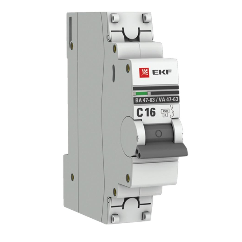Автоматические выключатели ВА 47-63 4,5 кА EKF PROxima являются механическими коммутационными аппаратами, производятся в одно-, двух-, трех- и четырехполюсном исполнениях и соответствуют ГОСТ Р50345-2010. Особенностью данной серии выключателей является усовершенствованная конструкция. В выключателях имеются пластиковые крышки, закрывающие доступ к винтовому зажиму и служащие для опломбирования выключателей, что исключает несанкционированный доступ к проводникам. Корпус выключателей усилен дополнительными заклепками для устранения эффекта расхождения корпуса. Выключатели оборудованы удобной ручкой управления, обеспечивающей надежное оперирование изделиями. На лицевой панели выключателей имеется цветовой индикатор состояния. Конструкция установочного зажима обеспечивает свободную установку выключателя на DIN-рейку.