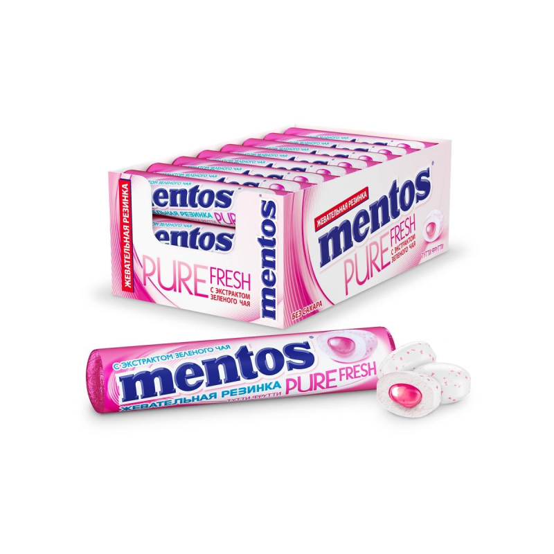 Жевательная резинка Mentos Pure Fresh вкус Tутти-Фрутти - это сочные драже жевательной резинки с жидким центром внутри в удобном формате ролла. Вы почувствуете хрустящую внешнюю оболочку и взрывное сочетание сладкого привкуса жвачки со свежестью мяты. Эффективно освежает дыхание, дарит ощущение уверенности в себе и вдохновляет на свежие идеи. В составе жвачки Mentos Pure Fresh вкус Тутти-Фрутти нет сахара. Благодаря компактному формату ролла жевательную резинку удобно брать с собой: упаковка легко помещается в кармане, сумке или рюкзаке. Состав: подсластители (Е967, Е420, Е421, Е965, Е951, Е950, Е955), основа резиновая, агент влагоудерживающий (Е422), ароматизаторы, крахмал (рисовый, кукурузный), мальтодекстрин, регулятор кислотности (Е296), загустители (Е466, Е415), экстракт зеленого чая (0,1%), эмульгаторы (Е473, Е322 (из сои)), растительное масло, глазирователь (Е903), краситель (Е120), антиокислитель (E321). Содержит источник фенилаланина. Содержит подсластители. При чрезмерном употреблении могут оказывать слабительное действие. Пищевая ценность: белки - 0,3 г, жиры - 0,3 г, углеводы - 66 г. Энергетическая ценность: 190 ккал. Хранить при температуре от +5 до +25°С при относительной влажности воздуха не более 75%. Срок годности: 36 месяцев. Масса нетто: 24 штуки по 15,5 г. Страна производства: Турция.