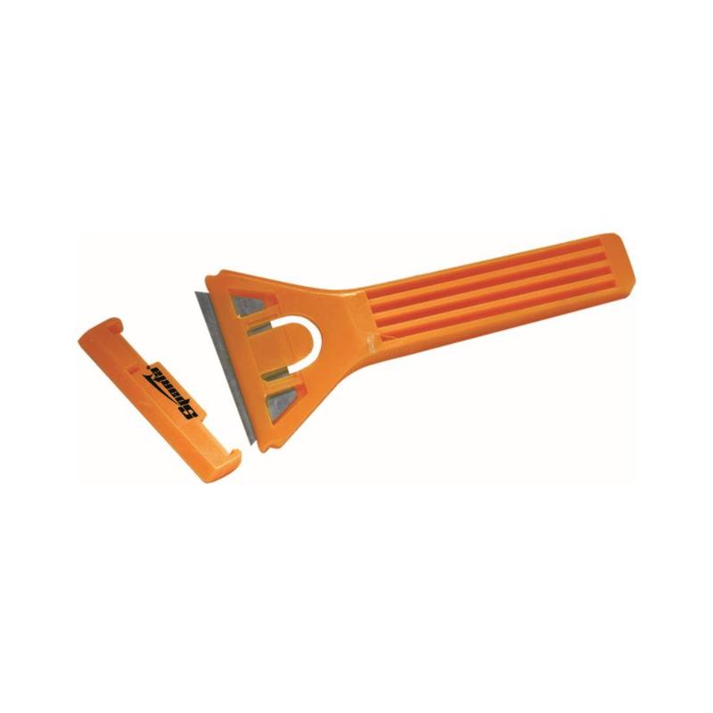 Скребок Sparta предназначен для удаления с поверхностей стекла, кафеля, керамики старой краски и других загрязнений. Оснащен фиксированным лезвием. При хранении и транспортировке на острое лезвие надевается защитный колпачок, обеспечивая защиту от порезов. Размер изделия: длинна - 13,3 см, ширина - 5,8 см. Материал лезвия: карбон.