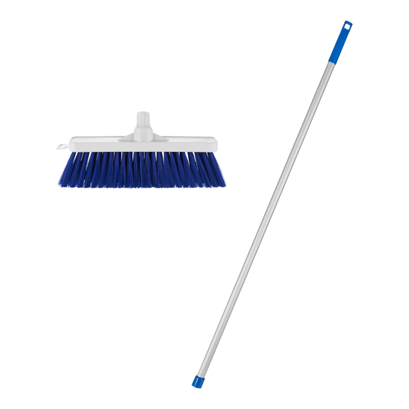 Щетка для пола SYR 30 см мягкая щетина Преимущества набора SYR: 1. Усиленная Ручка SYR имеет повышенный срок эксплуатации. Не оставляет следов металла на руках при использовании. Можно использовать со всеми держателями МОПов, щетками, совками, системами обеспыливания и мытья остекления ТМ SYR. 2. Щетка SYR 30 см с мягкой щетиной - предназначена для подметания гладких поверхностей: паркета, ламината, плитки, линолеума. Корпус выполнен из алюминия, стали и полипропилена, повышая ее прочность и долговечность. Ворс щетки расположен в 5 рядов, благодаря чему еще более эффективно притягивается пыль и мусор. Резьбовое крепление Interchange позволяет применять любую ручку SYR. Длина щетины: 7 см. Длина основания щетки: 30 см. Размер основания: 32x6,5 см 3. Набор имеет цветовую кодировку по стандарту ХACCП для предотвращения перекрестного загрязнения. Комплектация: 1. SYR Щетка для подметания c мягкой щетиной 30 см, крепление Interchange. 2. SYR Ручка усиленная 135 см из анодированного алюминия, крепление Interchange. Инвестиции в качественный инвентарь SYR для уборки сокращают общее время для мытья полов, повышает качество услуг и обеспечивают экономию расходов в долгосрочной перспективе. Может поставляться с рукояткой черного цвета.