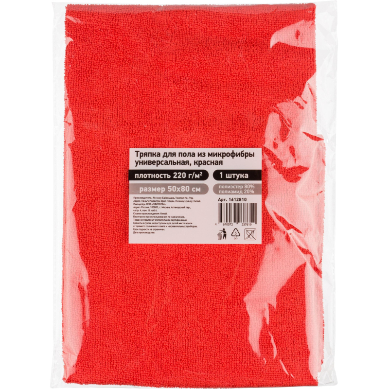 Тряпка для пола микрофибра 50x80 см красная Назначение: для мытья полов. Тряпка из плотной микрофибры идеально подходит для мытья всех видов покрытий. Она не царапает поверхности и отлично впитывает воду, как губка. Особенности и преимущества: - предназначена для мытья пола из любых материалов; - хорошо впитывает влагу; - полирует поверхность; - удаляет загрязнения и пыль; - легкая и удобная в применении; - долгий срок службы. Характеристики: - размер: 50x80 см. - цвет: красный - плотность: 220 г/кв.м - состав: 80% полиэстер, 20% полиамид Рекомендации по уходу: нет.
