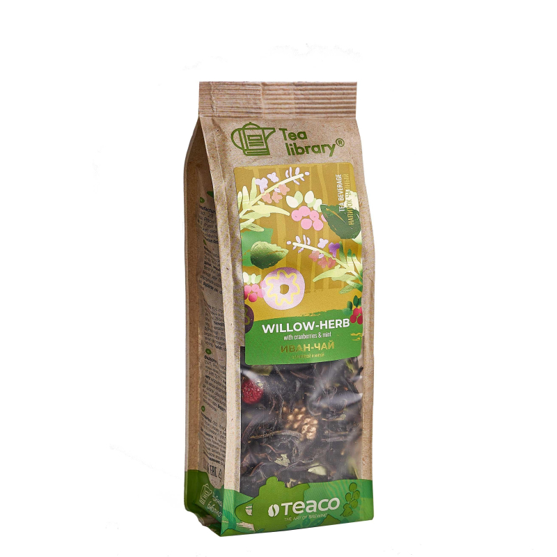 Чай подарочный Teaco листовой травяной Иван-Чай с клюквой и мятой 100 г. Авторский фруктово-травяной купаж на основе иван-чая с фруктово-ягодными и цветочными компонентами. Идеально подходит для употребления во второй половине для. Снимает стресс, расслабляет, нормализует эмоциональный фон. Рекомендуется добавление сахара, меда или других подсластителей. Состав: Иван-чай черный, клюква сушеная, шишки сосновые, мята. Способ приготовления: t заваривания: 95°С. Время заваривания: 4-5 мин. 100 гр. Транспортная коробка: 390x90x205 мм. Товарная упаковка: 45x75x200 мм.