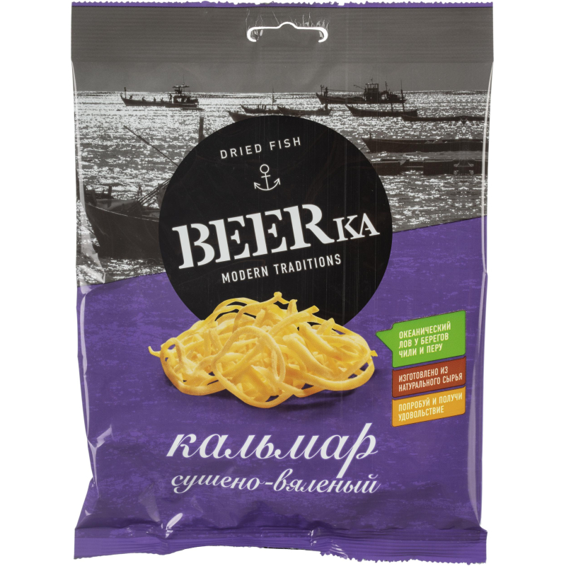 Перуанский кальмар BEERka филе соломка 70 г. Состав продукта: кальмар, сахар, соль, агент влагоудерживающий (Е420), усилитель вкуса и аромата (Е621), консерванты (Е202, Е211). Продукт может содержать следы кунжута, рыбы и продуктов их переработки. Произведено из мороженого сырья. Пищевая ценность на 100 г: белки - 33 г; жиры - 1 г; углеводы - 38 г. Энергетическая ценность на 100 г: 290 ккал. Хранить при температуре от -2 до +20°С и относительной влажности не более 75%. Срок хранения: 6 месяцев. Вес 70 г.