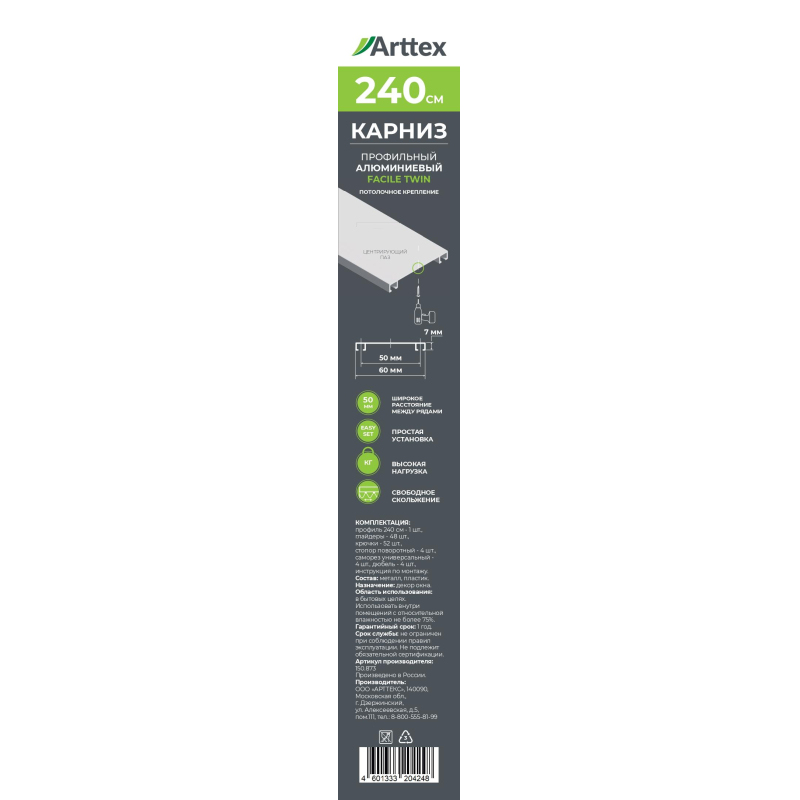 Карниз Facile Twin - профильный двухрядный карниз, монтируемый на потолок. Центрирующий паз значительно облегчает разметку для сверления отверстий при монтаже профиля. Широкое расстояние между рядами в 50 мм позволяет эстетично разместить тюль и портьеру. Подвес штор осуществляется на крючки, закрепляемые на глайдеры, легко и бесшумно передвигающиеся по трекам профилям. При незначительной толщине профиля, карниз Facile Twin допускает нагрузку тяжелых портьерных штор. Профильный карниз Facile Twin - это экономичное функциональное решение для современных минималистичных интерьеров. Изображения товаров на сайте не могут гарантировать точную цветопередачу.