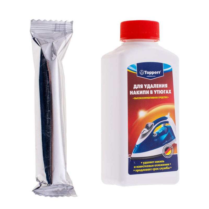 Набор для ухода за электрическими утюгами. В наборе 2 предмета: - концентрированное средство для очистки от накипи утюгов, 250 мл Концентрированное средство для очистки от накипи утюгов за счет высокой концентрации эффективно удаляет образовавшийся в процессе использования известковый налет. Бережно относится к внутренним деталям утюга и продлевает срок службы. Не токсично. - чистящий карандаш Очищает подошву утюга от загрязнений, не оставляет следов и царапин. Идеально подходит чистки утюгов с тефлоновым покрытием.