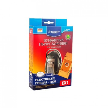 Бумажные пылесборники Topperr - это высококачественные бумажные многослойные мешки для пылесосов. Высокое качество посадочных фланцев, укомплектованных гигиеническими клапанами и резиновыми уплотнительными кольцами, гарантирует простую и быструю замену использованных пылесборников, препятствуя попаданию пыли в отсек пылесоса и в помещение. Соединив в себе четыре главных преимущества: качество немецкого производителя, самая полная комплектация (5 пылесборников + микрофильтры), информативная упаковка и конкурентная низкая цена - бумажные пылесборники Topperr по праву являются на сегодня самым выгодным предложением среди многообразия аналогичной продукции в России. Подходит для арт. 271222, 378755, 504350. Модели и серии пылесосов: AEG: Clario AEC7570-AEC7572 ; Maximus AM, MX; Oxy3 System AOS9300-AOS9352 ; Oxygen+ AE7300-AE7399 ; QS Elegance AVQ; System Pro P1-P999 ; Ultra Silencer AUS4030-AUS4040 ; Viva Control AVC1100-AVC1230 ; Viva QuickStop AVQ2100-AVQ2190 ; Тип оригинального пылесборника: S-bag , Gr.200, Gr.205 BORK: VC SHB 9016, 9118, 9818, 9919; Тип оригинального пылесборника: S-bag ELECTROLUX: Maximus ZXM 70.; Classic Silence ZCS 21.; JetMaxx ZJM 68.; Essensio ZEO 54.; UltraOne Z 88., Z90; Oxygen+ Z 73.; Oxygen Z 5?; UltraSilencer ZUSG 39., ZUS 39., ZUS 33., Z 33.; Ergobox Twintech XXLTT.; Clario Z 19., Z 20., Z 75.; Clario2 ZP 35.; ErgoSpace ZE 22., ZE 3.; XXL.; Airmax ZAM 61., ZAM 62.; CE ZCE 1800, ZCE 2200; Excellio Z 5?.; Smartvac Z 5?; VivaControl ZV 10.; VivaQuickStop ZVQ 21.; Oxi3 System ZO 63.; Bolido Z 15., Z 45.; Тип оригинального пылесборника: S-bag , E203 PHILIPS: EasyLife FC 8130-FC 8139; SilentStar FC 9302-FC 9306; SilentStar FC 9310-FC 9319; HomeHero FC 8910-FC 8920; SmallStar FC 8230-FC 8236; Performer FC 9150-FC 9179; Specialist FC 9101-9130; Studio FC 9080-9086; Jewel FC 9050-9078; Universe FC 9002-9049; Gladiator FC 9101-FC 9130; City Line FC 8432-FC 8439, City Line HR 8368-HR 8378; Expression FC 8600-FC 8649 , Expression FC 8600-FC 8649, , Expression FC HR 8300-HR 8349 ; Impact FC 8380-FC 8388 , Impact FC HR 8350-HR 8367 ; Mobilo HR 85.; Тип оригинального пылесборника: S-bag , FC 8021, FC 8022 ZANUSSI: ZAN 3600?3630; ZAN 4610, ZAN 4640; Тип оригинального пылесборника: S-bag , ZA197