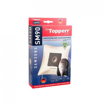 Синтетические пылесборники Topperr - это высококачественные многослойные мешки для пылесосов. Все синтетические пылесборники выполнены из 4-х слойного фильтровального нетканного материала MicrofiltPlusR способного задерживать частицы пыли размером до 0,3 микрона (класс очистки 12). Благодаря прекрасным фильтрующим свойствам материала MicrofiltPlusR синтетические пылесборники задерживают не только мельчайшие частички пыли, но и вредные для здоровья человека микроорганизмы. Высокое качество посадочных фланцев, укомплектованных гигиеническими клапанами и резиновыми уплотнительными кольцами, гарантирует простую и быструю замену использованных пылесборников, препятствуя попаданию пыли в отсек пылесоса и в помещение.Яркая, качественная, проработанная до мелочей упаковка, с постоянно обновляющейся информацией выгодно отличает пылесборники Topperr от аналогичной продукции.Соединив в себе четыре главных преимущества:качество немецкого производителя, самая полная комплектация (4 пылесборника + микрофильтры), информативная упаковка и конкурентная низкая цена. Подходит для арт. 348866, 504347, 517242. Модели и серии пылесосов: SAMSUNG: SC 75.., SC 72.., SC 70.., SC 69.., SC 54.., SC 53.., SC 52.., SC 51.., SC 31.., VC 58.., VC 59.., VC 61.., VC 62.., VC 63.., VC 64.., VC 67.., VC 68.., VC 69.., VC 71.., VC 86.. Тип оригинального пылесборника: VP-78M