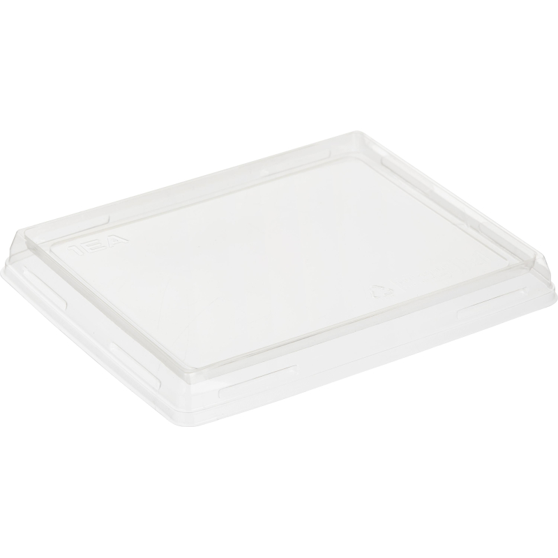 Крышка пластиковая прозрачная 150x115 мм (600 штук в упаковке). Предназначен для контейнеров в которых можно герметично закрыть салаты, вторые блюда, кондитерскую выпечку и т. д. Крышка из ПЭТ материала вторичной переработки. Размер крышки: 150x115 мм. В упаковке 600 штук. Крышка поставляется отдельно от контейнеров.
