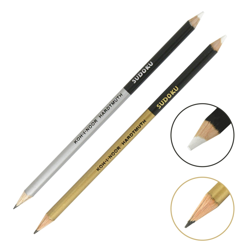 Карандаш Koh-i-Noor Sudoku - это чернографитный карандаш и ластик в одном корпусе. Подходит для художников - графистов, любителей кроссвордов и школьников. Ластик, также как и карандаш, можно точить точилкой. Благодаря острому кончику им можно стирать самые мелкие детали, использовать для прорисовки бликов и шерсти животных. Если ластик запачкался или стерся - просто поточи его и он снова чистый и мягкий. Разрешено использование с трех лет. Упаковка - пластиковый тубус, размер 55x55x178 мм. Цвета в ассортименте - черно-серебряный и черно-золотистый.