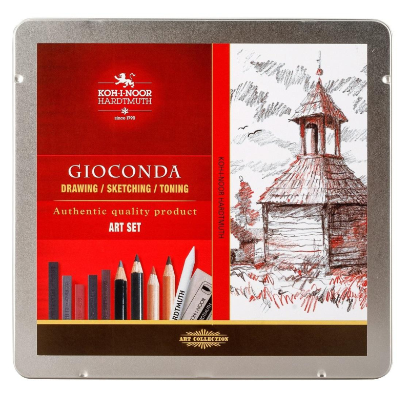 Прекрасный набор для художников-графиков и любителей рисования в металлическом пенале. В состав набора входят: в брусочках - мел, сангина, сепия светлая и темная, 3 графита твердости 2B, 4B и 6B, 4 угля, а также карандаши: мел, сангина, сепия светлая и темная, 3 акварельных карандаша твердости 2B, 4B и 6B, 3 черных матовых карандаша, 1 уголь в карандаше, растушевка и клячка. Размер упаковки 190x197x17 мм.