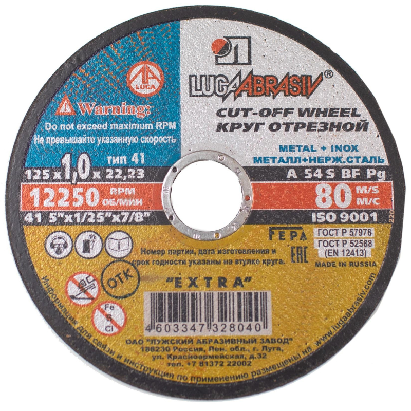 Круг отрезной армированный изготовлен из электрокорунда нормального на основе бакелитовой связки с армированием предназначен для ручных резчиков. Применяется для высокопроизводительной резки деталей и конструкций из различных марок стали, нержавеющей стали и быстрорежущей стали. Круг особенно эффективен при резке тонкостенного профиля и листового металла. Посадочный диаметр: 22.23 мм. Толщина: 1 мм. Диаметр наружный, мм: 125 мм. Рабочая скорость кругов, м/сек: 80. Тип круга: прямой профиль. Шлиф.материал: A54. Твердость: S.