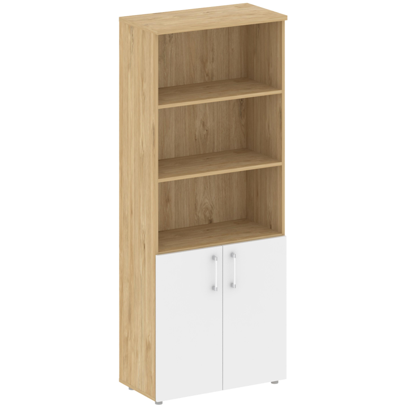 Внимание! Пожалуйста, проверяйте цвет изделия до начала сборки! Цвет на изображении товара в интернет-магазине или в печатном каталоге может отличаться от оригинала из-за особенностей цветопередачи. Шкаф высокий широкий представляет собой единую конструкцию, включающую в себя крышку, две вертикальные стенки, заднюю стенку (ХДФ), дно, полки. В шкаф устанавливаются два низких фасада на петли с доводчиком. Крышка изготавливается из ЛДСП 25 мм, задняя стенка - ХДФ 3 мм, соединенных пластиковым профилем. Остальные детали - 18 мм. Видимые торцы облицованы кромкой толщиной 2мм, невидимые кромкой толщиной 0.4 мм. Шкаф стоит на регулируемых пластиковых опорах высотой 27 мм, которые устанавливаются в отверстия с нижней части дна шкафа. Ручки на фасадах расположены вертикально (межосевое расстояние 160 мм). Изделие поставляется в разобранном виде. Комплект фурнитуры и подробная инструкция по сборке изделия вкладываются в упаковку.