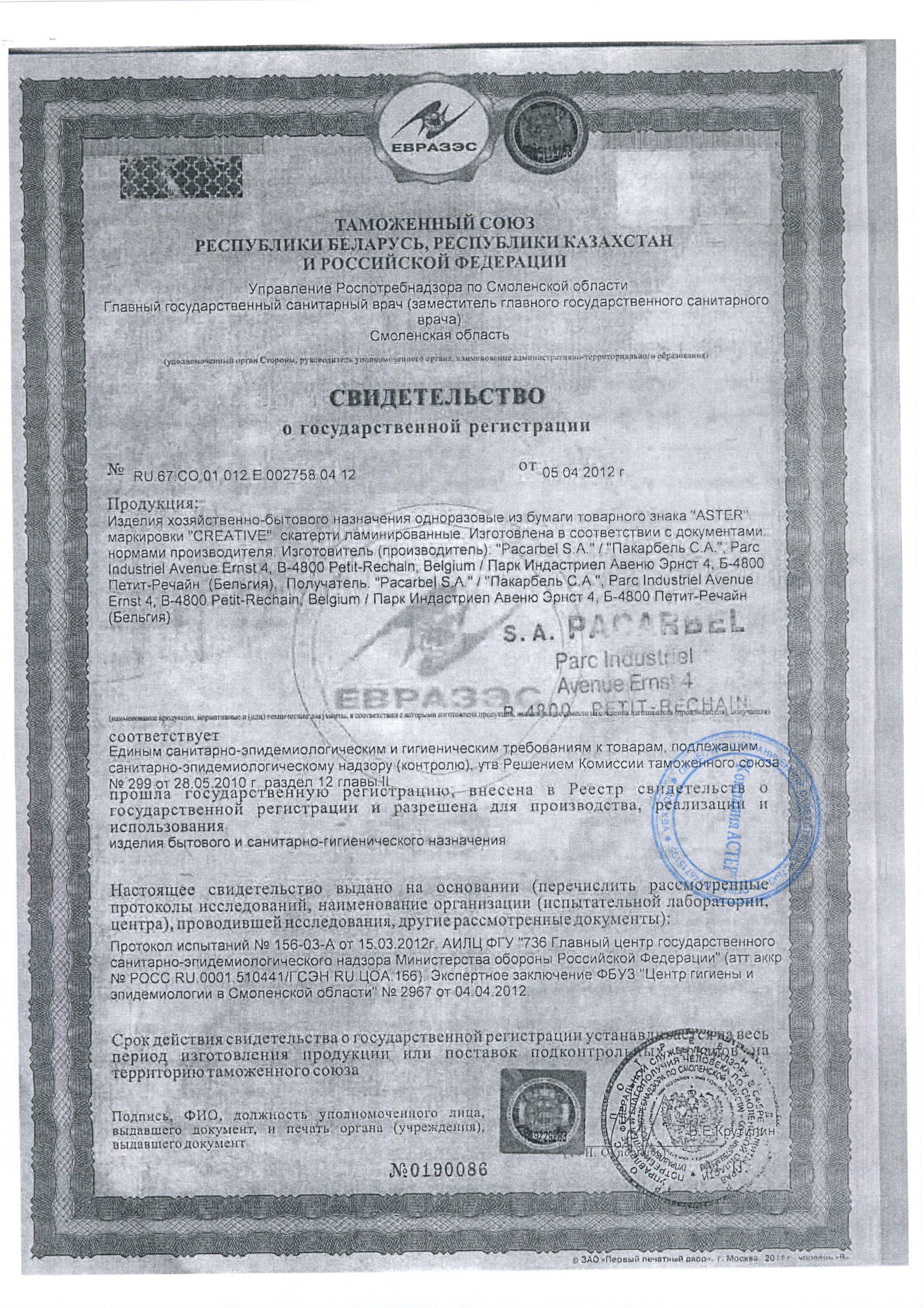Одноразовую однослойную бумажную скатерть Aster Creative производят по самым современным технологиям. Ламинированная бумага с эффектом шелка — на ощупь очень нежный материал, который не пропускает влагу. Это достигается специальной обработкой. На бумагу наносится рисунок и сверху покрывается влагонепроницаемой плёнкой с шелковым эффектом. Скатерть поможет создать приятную атмосферу за обеденным столом, как в небольшом кафе, так и в столовой крупной компании. Пятноустойчивая поверхность.