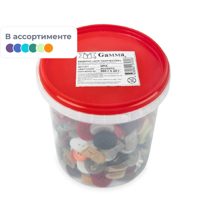 Набор пуговиц для творчества Gamma для творчества. Пуговицы могут быть как чисто функциональной частью одежды, так и украшением. Ими можно украсить любой элемент одежды и аксессуары-расшить шляпу, сумку, предметы интерьера, украсить рамку для фотографий, вазу, можно сделать интересные поделки, а так же использовать в детских играх. Пуговицы размещены в пластиковый контейнер, который станет прекрасным решением для хранения.