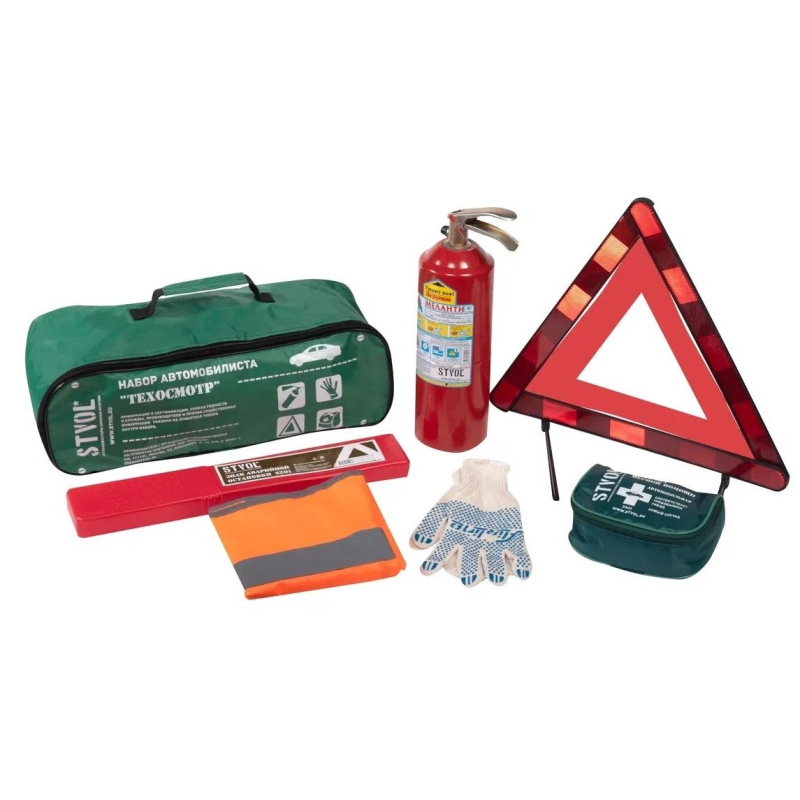 Набор автомобилиста Stvol - это комплект из самых необходимых предметов в случае возникновения непредвиденных или аварийных ситуаций на дороге. Комплектация набора: знак аварийной остановки, аптечка первой помощи, огнетушитель, светоотражающий жилет и перчатки. Все предметы соответствую требованиям ГОСТ и ГИБДД.