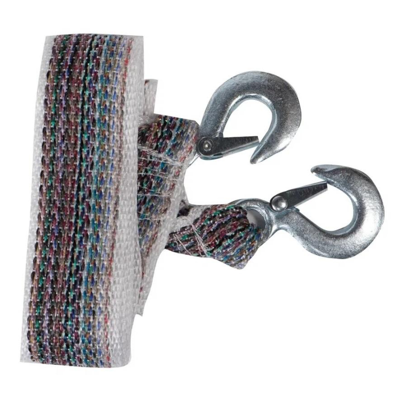 Буксировочный трос - неотъемлемая часть дополнительного оснащения любого автомобиля. Служит для буксирования неисправного автомобиля. Буксировочный трос лента оснащен 2 металлическими крюками, имеет длину 4 метров и выдерживает нагрузку 7 тонн на разрыв.