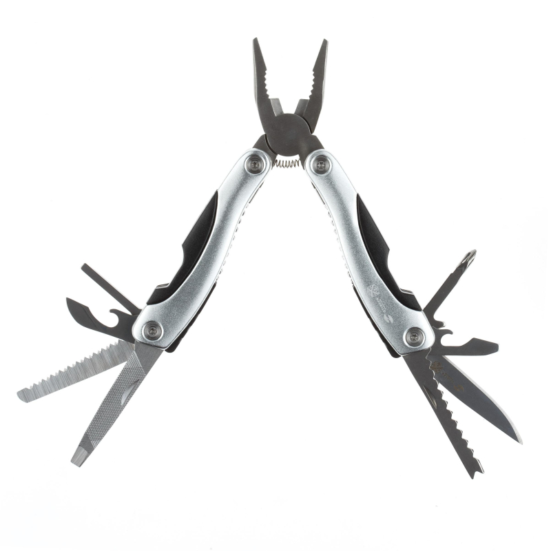 Многофункциональный инструмент Stinger с набором из 15 функций: 1. Острогубцы; 2. Пассатижи; 3. Кусачки; 4. Лезвие; 5. Пила; 6. Открывалка для бутылок; 7. Консервный нож; 8. Линейка; 9. Отвертка крестовая; 10. Отвертка шлицевая большая; 11. Отвертка шлицевая средняя; 12. Отвертка шлицевая малая; 13. Напильник; 14. Инструмент для чистки рыбы; 15. Инструмент для извлечения рыболовного крючка. Характеристики: - материал инструментов: нержавеющая сталь 2Cr13, - материал рукояти: алюминий, пластик, - вес: 235 г В комплекте: чехол из синтетического материала. Упаковка: складная картонная коробка. Внешний вид и/или характеристики товара могут быть изменены производителем в соответствии с производственным процессом.