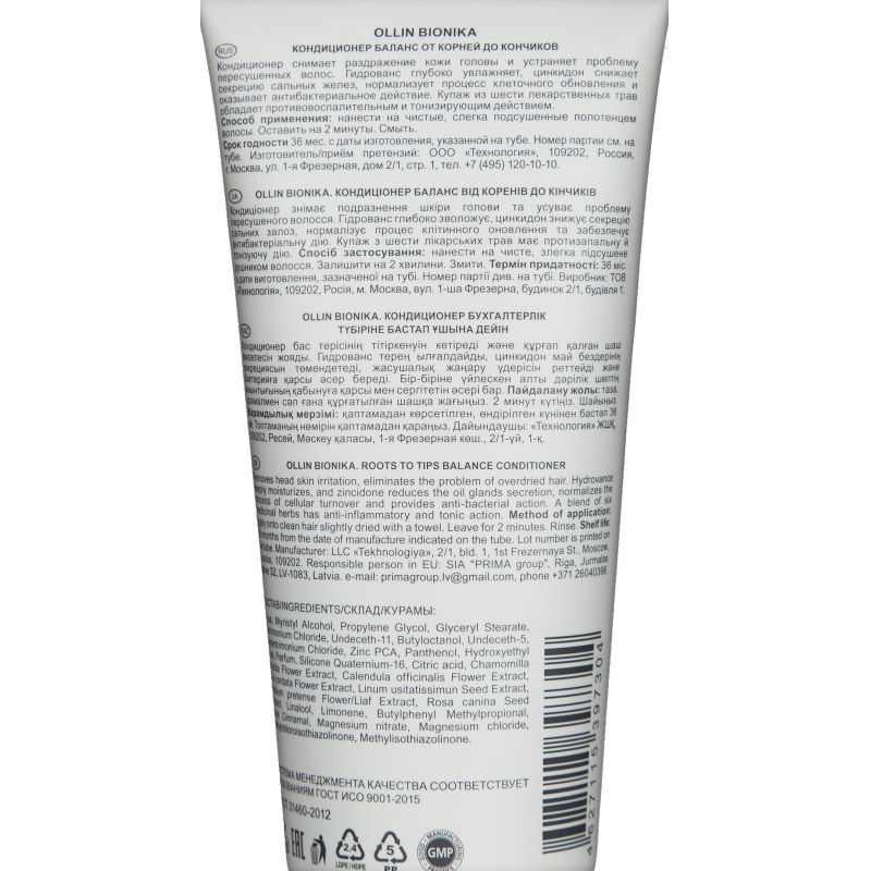 Кондиционер для волос Ollin Bionika Баланс от корней до кончиков 200 мл. Кондиционер интенсивно увлажняет волосы и оказывает противовоспалительное действие, благодаря богатому составу. Средство эффективно нормализует работу сальных желез и устраняет раздражение кожи головы, прекрасно питает и облегчает расчесывание. Купаж экстрактов лекарственных трав оказывает тонизирующее действие. Свойства кондиционера Ollin Bionika Roots To Tips Balance Снимает раздражение и устраняет проблемы пересушенных волос. Отличное средство для жирных волос у корней и сухих по длине. Нормализует природный баланс волос и кожи головы, питает и увлажняет ее. Снижает секрецию сальных желез, нормализует процесс клеточного обновления, оказывает антибактериальное действие. Способ применения: нанести на чистые, слегка подсушенные полотенцем волосы. Оставить на 2 минуты. Смыть. Состав: провитамин В5, цинкидон, экстракт ромашки, экстракт листьев календулы, экстракт цветков липы, экстракт розы, гидрованс, экстракт клевера лугового. Объем: 200 мл.