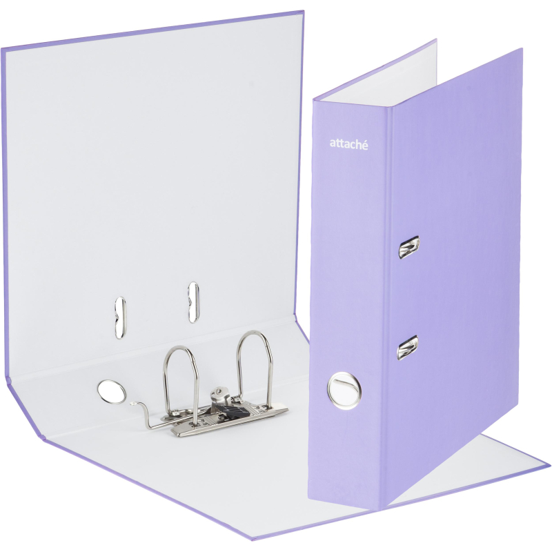 Папка-регистратор 75мм Attache Акварель А4, изготовлена из картона, покрытого ламинированной бумагой. Цвет сиреневый, формат А4. На корешке шириной 75 мм - кольцо для удобного захвата. Арочный механизм произведен в Чехии. Папка-регистратор вмещает до 480 листов стандартной плотности.