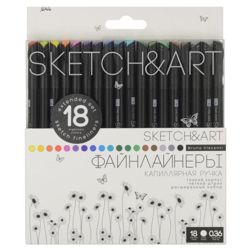 Набор линеров для скетчинга Sketch&Art black edition 18 цветов (толщина линии 0.36 мм). Набор линеров 'Sketch&Art' для рисования, набросков, письма, каллиграфии, леттеринга, чертежных работ. Изюминку лаконичному дизайну корпуса линера придает колпачок, завершающийся элементом в виде капельки в цвет чернил линера. Лаконично, но в тоже время изящно - приятно и комфортно держать линер в руке. Еще приятнее работать с ним: мягкое скольжение по поверхности бумаги обеспечивает наконечник из высококачественного синтетического волокна, устойчивого к истиранию. Он достаточно прочный, но гарантирует ультратонкую линию. Толщина линии- 0,36 мм. Металлический обжим наконечника дает возможность работать с линейками и трафаретами. Пигментные чернила на водной основе не имеют запаха, легко смываются с рук и отстирываются от ткани. Мягкая, прозрачная упаковка с европодвесом обеспечивает удобное хранение и транспортировку линеров. Набор из 18 линеров самых востребованных цветов в картонной упаковке с покрытием Soft Touch станет удачным приобретением или подарком для всех любителей рисования.