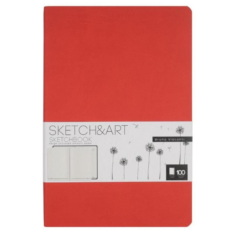Скетчбук Sketch&Art original 140х210 100 листов (красный). Скетчбук 'SKETCH&ART' на 100 листов в книжном переплете от Bruno Visconti - это функциональный блокнот для зарисовок. Гибкая обложка из искусственной кожи с великолепным качеством отделки и скругленными углами - образец стиля и элегантности, комфорта и практичности. Скетчбук сохраняет первоначальный внешний вид даже при активном использовании и дарит приятные тактильные ощущения благодаря бархатистому покрытию Soft Touch. Формат А5 позволяет брать скетчбук в дорогу, он легко помещается в дамскую сумочку, а значит всегда будет у вас под рукой. Листы блока плотностью 100 г/кв.м, бежевого цвета - приятный и выгодный фон для создания эскизов и зарисовок цветными и чернографитными карандашами, ручками, линерами. Художественно оформленные форзац и нахзац с выделенным полем для персональных данных - дополнительное преимущество скетчбука.