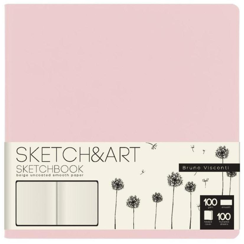 Скетчбук Bruno Visconti Sketch&Art Zefir 145х145 100 листов (розовый). Скетчбук Sketch&Art на 100 листов в книжном переплете от Bruno Visconti - это функциональный блокнот для зарисовок. Гибкая обложка из искусственной кожи с великолепным качеством отделки и скругленными углами - образец стиля и элегантности, комфорта и практичности. Он сохраняет первоначальный внешний вид даже при активном использовании и дарит приятные тактильные ощущения благодаря бархатистому покрытию Soft Touch. Компактный формат позволяет брать скетчбук в дорогу, он легко помещается в дамскую сумочку, а значит всегда будет у вас под рукой. Листы блока плотностью 100 г/кв.м бежевого цвета - приятный и выгодный фон для создания эскизов и зарисовок цветными и чернографитными карандашами, ручками, линерами. Закладка-ляссе поможет найти необходимую страницу. Художественно оформленные форзац и нахзац с выделенным полем для персональных данных - еще одно преимущество скетчбука. Отличная идея для презента!