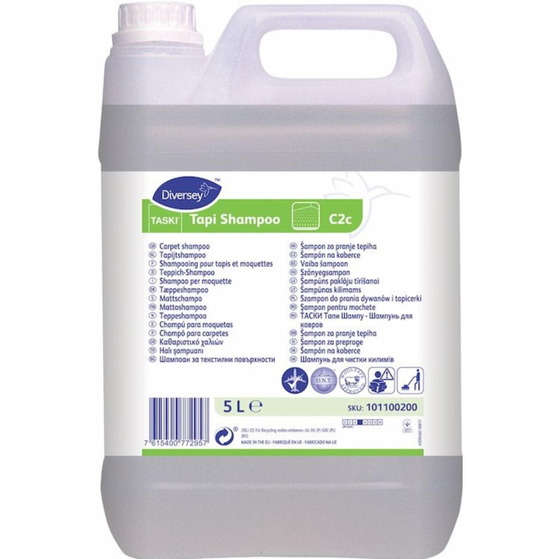 Шампунь для пенной очистки ковровых покрытий Diversey Taski Tapi Shampoo 5 л (концентрат) Назначение. TASKI Tapi Shampoo - концентрированный шампунь для промежуточной чистки всех типов ковров и обивки. Технология O.N.T. эффективно нейтрализует молекулы неприятного запаха и надолго оставляет приятный аромат после применения средства. Остатки средства легко удаляются с ковра с помощью пылесоса. Эффективно деактивирует аллергены клещей домашней пыли. Безопасность при обработке любых ковров, включая шерстяные. Возможность использования как при сухой, так и при влажной обработке, а также при обработке при помощи коврового пада. Способ применения. Минимальная дозировка: 3% (300 мл/10 л). При сильном загрязнении увеличить до 10%. При помощи коврового круга: 2%. Метод инкапсуляции: 8% (800 мл/10 л). Метод сухой пены: Отмерить и добавить необходимое количество средства в наполненный водой бак однодисковой машины, оснащенной пеногенератором и щеткой для пенной чистки ковров. Отрегулировать пеногенератор для подачи оптимального количества сухой пены и приступить к обработке ковра. При помощи щетки для ковров поднять ворс, пока он еще влажный, чтобы ускорить высыхание. Дать обработанному ковру полностью высохнуть, затем тщательно пропылесосить, чтобы удалить кристаллический осадок от шампуня. Обивку обработать при помощи ручной щетки, дать ей высохнуть, затем тщательно пропылесосить. Влажное шампунирование: При помощи однодисковой машины, бака и моющей щетки нанести средство непосредственно на пол и сразу же промыть ковер. При помощи щетки для ковров поднять ворс, пока он еще влажный, чтобы ускорить высыхание. Дать обработанному ковру высохнуть, затем тщательно пропылесосить, чтобы удалить кристаллический осадок от шампуня. Обивку обработать при помощи ручной щетки, дать ей высохнуть, тщательно пропылесосить. Метод инкапсуляции: Отмерить необходимое количество средства и добавить в бак машины с чистой водой. Установить соответствующие настройки на машине и немедленно приступить к работе, медленно передвигая машину по ковру в обратном направлении (см. инструкцию по работе с машиной). Передвигать машину внахлест при каждом проходе. Дать обработанному ковру полностью высохнуть, затем тщательно пропылесосить. Метод о##работки при помощи коврового пэда: При использовании однодисковой машины и коврового пэда распылить небольшое количество средства на ковер и ковровый круг. Систематически обработать все участки движениями внахлест. Заменить или перевернуть ковровый круг по мере загрязнения. Средство возможно использовать и при методе боннет-чистки. Состав: вода (мягкая), 2-феноксиэтанол, динатрий лаурамид сульфосукцинат МЭА, натриевая соль алкилсерной кислоты, натриевая соль 1,2-бензизотиазолин-3-она, отдушка. Срок годности: 2 года с момента производства (при соблюдении условий хранения, рекомендованных производителем).