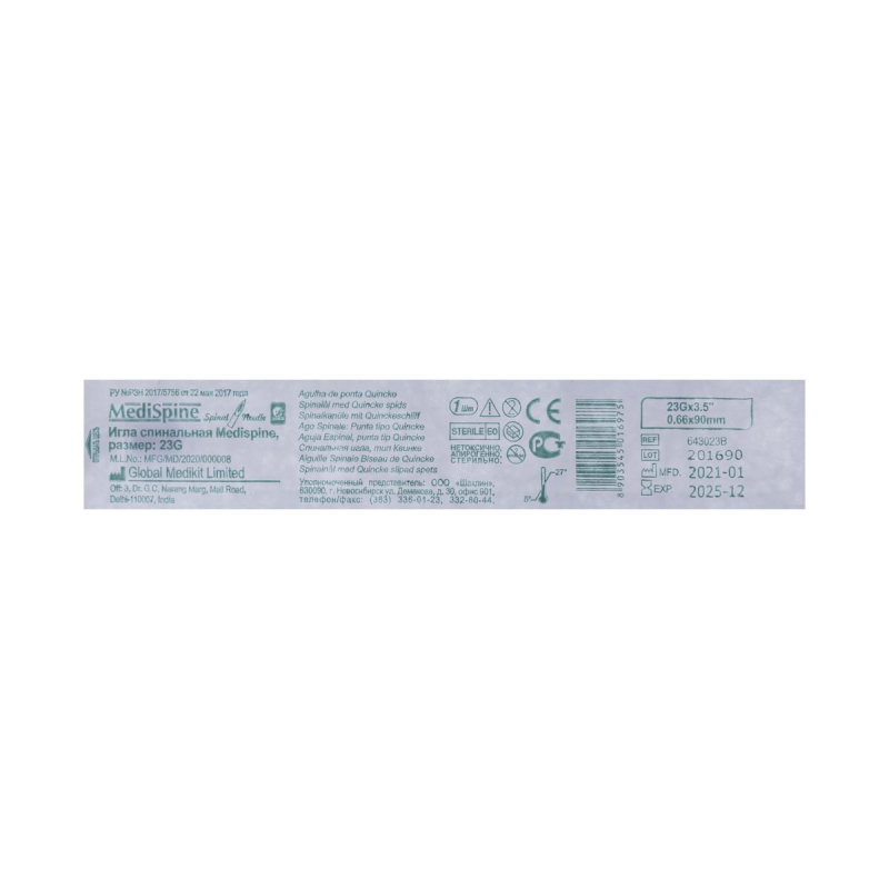 Игла спинальная INEKTA G23 (тип Квинке) Medispine 25 шт/уп