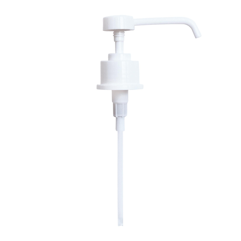 Дозирующий насос из пластика с насадкой. Для Еврофлаконов объемом не менее 350/500 мл диаметр 2,5 см. Используется для дозированного извлечения жидкости из флакона в количестве 1,5-2 мл при одном нажатии. Наружный диаметр крышки насоса 42 мм, внутренний диаметр резьбы 32 мм, высота над бутылкой в закрытом бутылкой 44 мм, длина сопла общая 89 мм, длина сопла (от центра насоса) 73 мм, длина погружной трубки ниже прокладки 153 - 157 мм, 17,42+2 г.