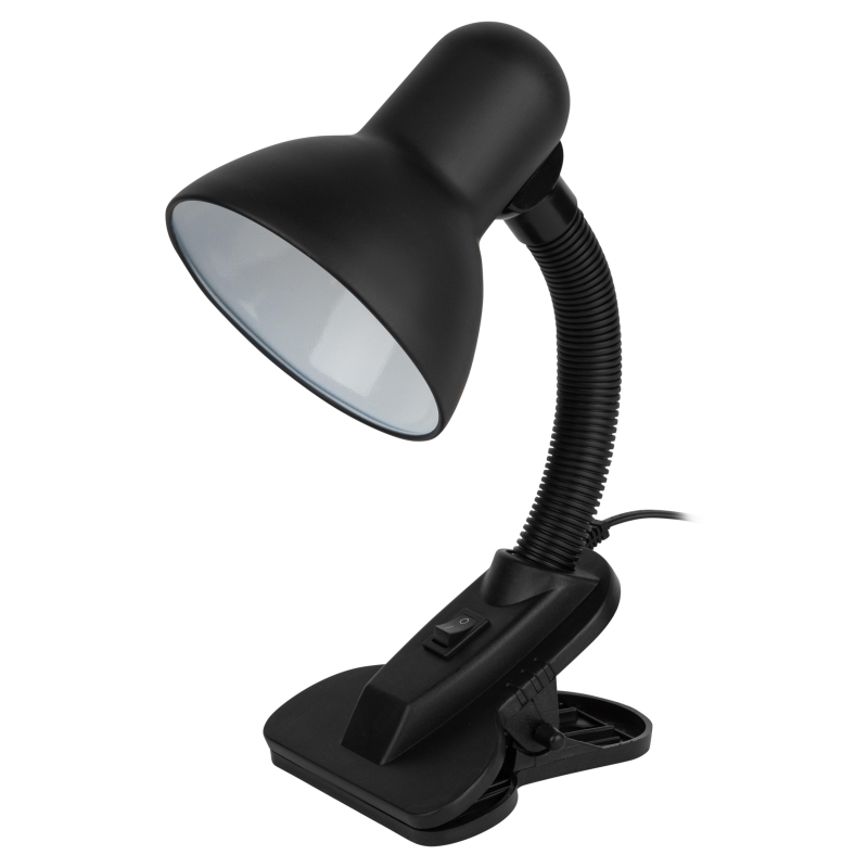 Настольный светильник-прищепка ЭРА N-102-E27-40W-BK может использоваться с лампой накаливания, компактной люминесцентной лампой (КЛЛ) или светодиодной (LED) лампой. У светильника прочная удобная прищепка и металлический плафон. Наклон и поворот плафона в любом направлении для удобного направления света. Поставляется в индивидуальной картонной коробке. Настольная лампа для работы детская для школьника на прищепке / Светильник настольный для чтения Е27. Металлический плафон. Направление света регулируется гибкой стойкой, которая обеспечивает наклон и поворот плафона в любом направлении. Выключатель на прищепке. Классический дизайн. Предназначен для использования с лампой накаливания или компактной люминесцентной лампой (КЛЛ): максимальная мощность 40 W, цоколь E27, 220V 50HZ, лампа в комплект не входит. Внешний вид и/или характеристики товара могут быть изменены производителем в соответствии с производственным процессом.