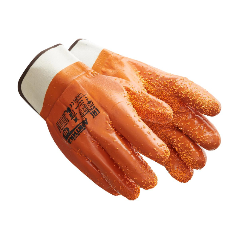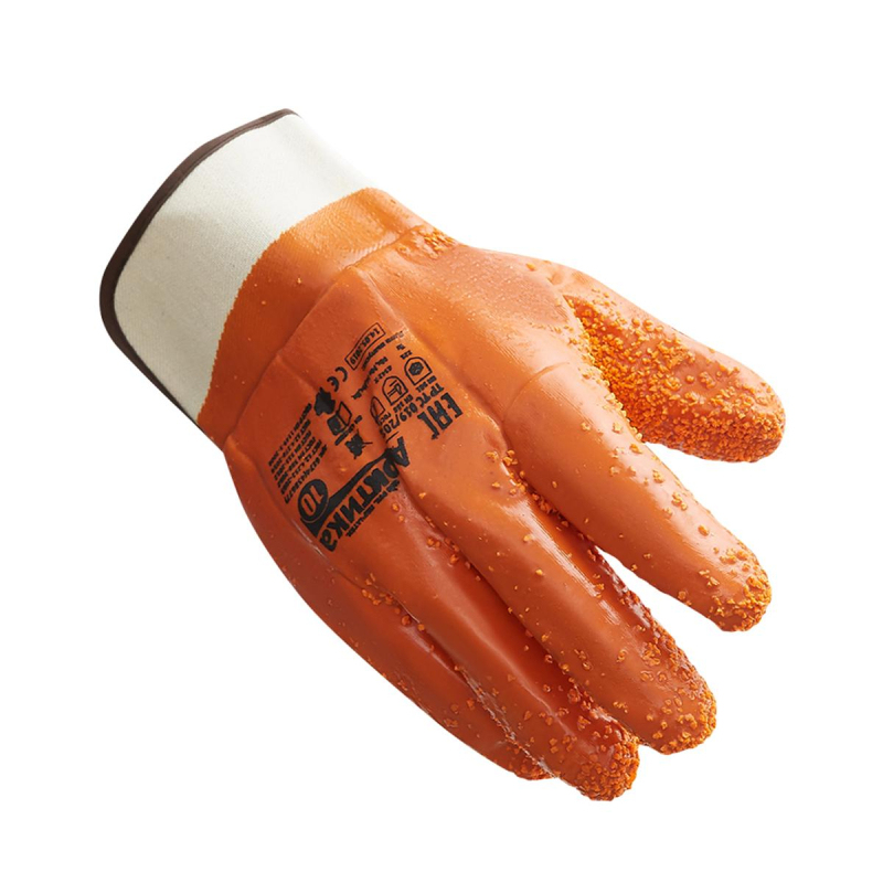 Перчатки рабочие утепленные от химикатов, проколов и порезов Арктика хлопковые с полным покрытием, ПВХ крошка, оранжевые (размер 10, XL) предназначены для работ с металлоконструкциями, строительными, абразивными и другими материалами, а также для строительных, монтажных, погрузочно-разгрузочных работ, общепромышленного использования в условиях пониженных температур. Перчатки обладают высокими теплоизоляционными свойствами при работе в условиях пониженных температур. Благодаря полному ПВХ покрытию перчатки водонепроницаемы, герметичны, обеспечивают защиту от масел, нефти и нефтепродуктов, механических воздействий (истирание, порез, прокол). Текстурированная поверхность на внутренней стороне ладони выполнена при помощи специальной технологии нанесения ПВХ крошки, обеспечивает отличный захват и отсутствие скольжения. Специальная конструкция манжеты в виде краги обеспечивает дополнительную защиту в области запястья. При необходимости, манжета крага позволяет быстро скинуть перчатки с ладони. Размер - 10, XL. Вес - 223 г. Длина - 280 мм. Материал покрытия - пенополиуретан. Рисунок нанесения - полный облив ПВХ крошка. Цвет на изображении товара в интернет-магазине или в печатном каталоге может отличаться от оригинала из-за особенностей цветопередачи монитора.