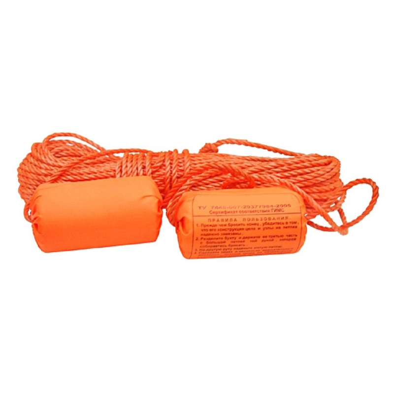 Канат спасательный (конец Александрова) линь (длина 18 метров). Спасательные концы считают одним из наиболее универсальных средств для спасения. Они могут выполнять сразу несколько функций и являются средством комплектации маломерных судов. Особенности: - В конструкции предусмотрена незатягивающаяся петля с двумя поплавками, обшитыми тканью. - Конец выбрасывают утопающему, который должен самостоятельно надеть петлю через голову и зафиксировать ее на груди. После этого спасательный конец медленно подтягивают в сторону судна или берега. Представленная модель является усовершенствованным вариантом, так как в ней поплавки обтянуты тканью.