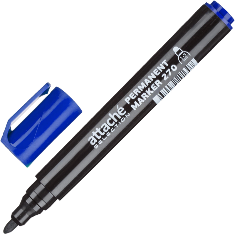 Маркер перманентный Attache Selection в прочном пластиковом корпусе. Нестираемые светостойкие чернила на спиртовой основе, не содержат ксилол и толуол. Идеально подходит для надписей на металле, пластике, дереве и картоне, а также резине, стекле, камне, кирпиче, бетоне, пленке. Прочный акриловый наконечник круглой формы позволяет провести линию толщиной от 1 до 3 мм. Цвет - синий. Длина линии письма - 500 м.