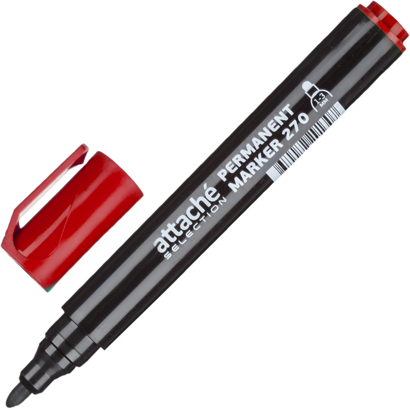 Маркер перманентный Attache Selection в прочном пластиковом корпусе. Нестираемые светостойкие чернила на спиртовой основе, не содержат ксилол и толуол. Идеально подходит для надписей на металле, пластике, дереве и картоне, а также резине, стекле, камне, кирпиче, бетоне, пленке. Прочный акриловый наконечник круглой формы позволяет провести линию толщиной от 1 до 3 мм. Цвет - красный. Длина линии письма - 500 м.