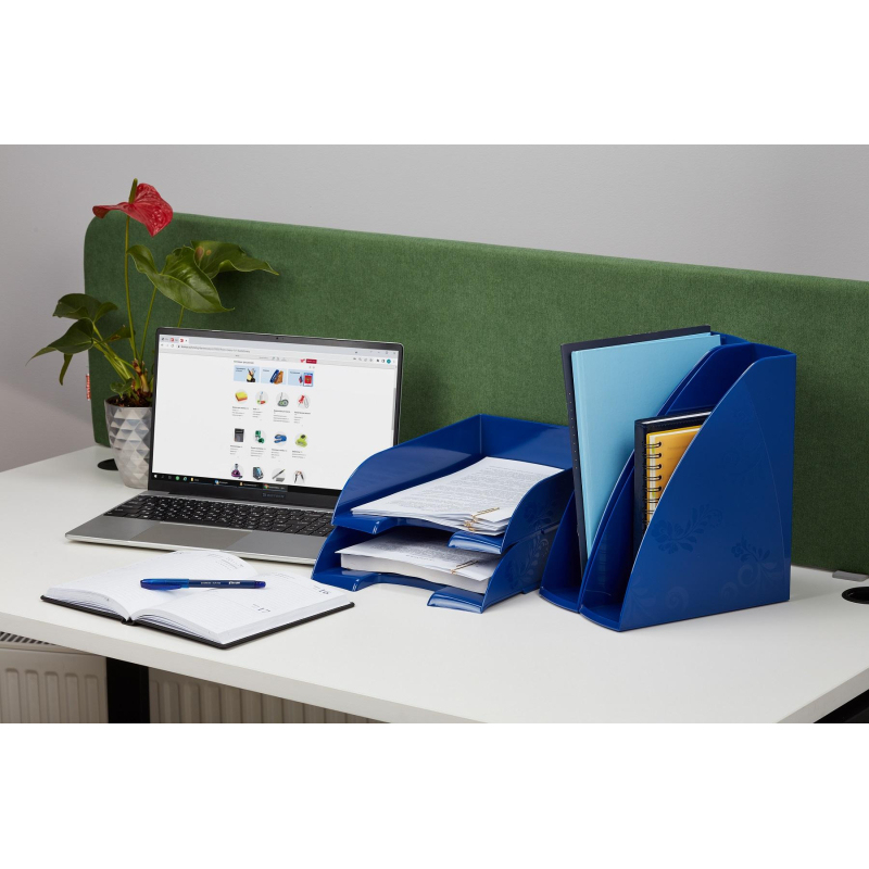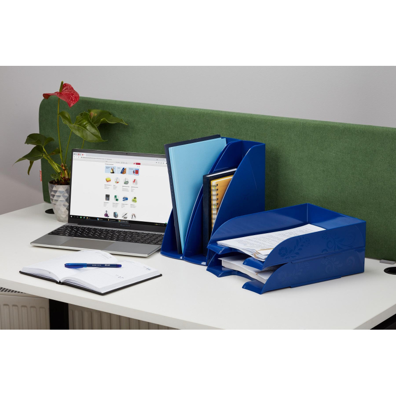 Вертикальный накопитель выполнен из пластика синего цвета. Яркая палитра и оригинальный дизайн лотка освежат Ваш рабочий стол. Накопитель позволяет удобно хранить документы и печатную продукцию формата А4. Не занимает много места на рабочем столе. Имеет 1 отделение шириной 85 мм. Размеры изделия (ГxШxВ): 235x85x288 мм. Вес: 283 г. Обладает устойчивой конструкцией, благодаря которой является удобным для хранения объемных документов. Товар поставляется в собранном виде.