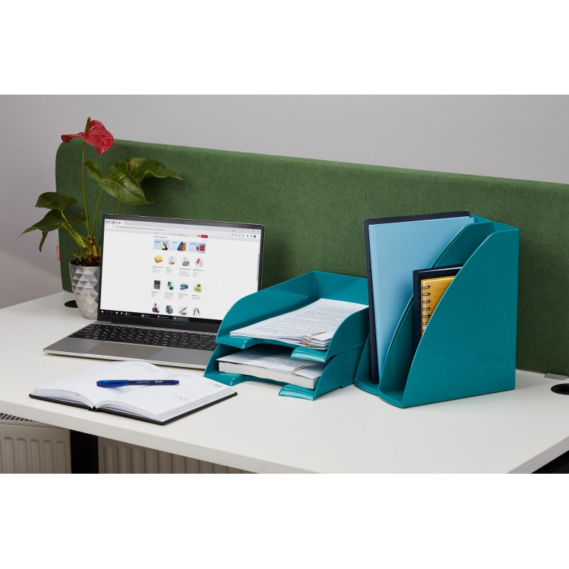 Горизонтальный лоток для бумаг выполнен из пластика бирюзового цвета, предназначен для хранения документов и печатной продукции формата А4. Этот лоток освежит рабочий стол благодаря дизайну и яркой палитре. Возможна установка лотков друг на друга и со смещением (штабелирование). Изготовлен из полистирола. Цвет: бирюзовый. Размеры (ВхГхШ): 65x320x245 мм. Вес 0.289 кг.