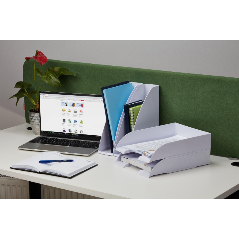 ?Горизонтальный лоток для бумаг выполнен из пластика белого цвета, предназначен для хранения документов и печатной продукции формата А4. Этот лоток освежит рабочий стол благодаря дизайну и яркой палитре. Возможна установка лотков друг на друга и со смещением (штабелирование). Размеры (ВхГхШ): 65??x??320??x??245 мм. Вес??: 289 г.?