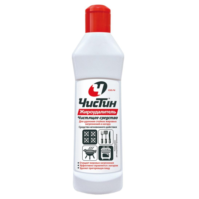 Чистящее средство для кухни Чистин гель Жироудалитель 300 мл. Назначение. Средство быстрого действия для удаления стойких, застарелых жировых загрязнений с духовых шкафов, кухонных плит, вытяжных шкафов, микроволновых печей, кухонных фартуков, конфорок, шампуров, барбекю, и других поверхностей, устойчивых к действию щелочей. Эффективно и бережно обезжиривает и удаляет особо стойкие жировые загрязнения и нагар. Способ применения. Средство выдержать на очищаемой поверхности не более 10 мин, почистить и смыть водой. При необходимости обработку повторить. Для мытья кухонных поверхностей использовать раствор средства 2,5 г (? чайной ложки) на 5 л воды. Меры предосторожности. Осторожно! Содержит щелочь! При попадании в глаза и на кожу вызывает раздражение. При работе использовать щетку и перчатки. При попадании средство на кожу тщательно промыть водой. При попадании в глаза - длительно промыть большим количеством воды. Состав. ? 5%, но < 15% щелочь; < 5%: АПАВ, краситель, ароматизирующая добавка. Условия хранения. Хранить плотно закрытым в вертикальном положении в недоступных для детей местах. Не использовать для чистки нержавеющей стали, алюминия, окрашенных, полированных и лакированных поверхностей. Не смешивать с другими средствами. Срок годности: 2 года (с даты изготовления).