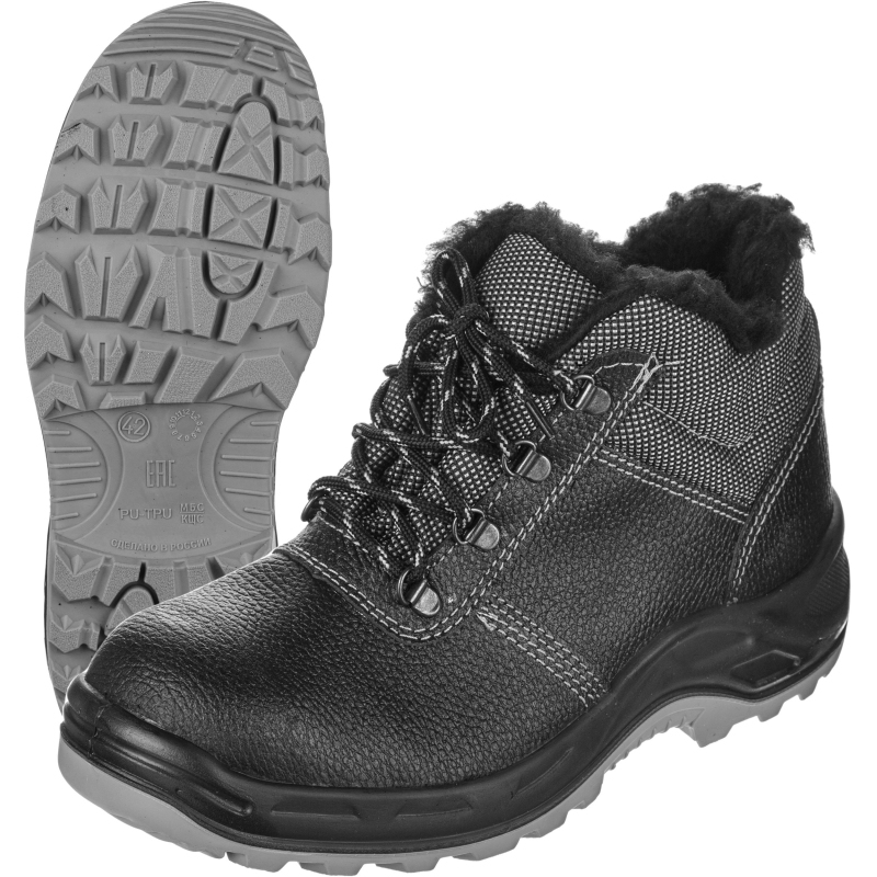 Ботинки Профи модели 71К выполнены в черном цвете. Размер 37. Универсальная мужская и женская модель из популярной линии Профи. Рекомендована для использования в большинстве отраслей промышленности, сельском хозяйстве, строительстве, транспорте, а так же для работников нефтеперерабатывающих и металлообрабатывающих предприятий. Полнотно-размерные характеристики применяемой при производстве обувной колодки, обеспечивают удобство в носке и позволяют не ощущать усталости в течение всего рабочего дня. Влагостойкая натуральная кожа высокого качества обеспечивает хороший воздухообмен и эстетичный вид. Мягкий кант из высококачественного полиэстера Оксфорд, стойкого к истиранию и обладающего водоотталкивающими свойствами, анатомической формы создает удобство при ходьбе. Клапан-язык обеспечивает комфорт в носке и исключает попадание внутрь мелких предметов, брызг, пыли. Специально разработанная модель подблочника из натуральной кожи, для плотной шнуровки анатомической формы повышает устойчивость конструкции и обеспечивает повышенную защиту ноги от травм. Шнурки с внутренним сердечником оптимального размера. Пластиковый, плотно прилегающий наконечник препятствует расплетению шнурка. Плотное частое плетение из тонкой пряжи-обеспечивает скольжение в петлях, что гарантирует долгий срок эксплуатации. Обувь утепленаискусственным мехом плотностью. Гибкая двухслойная подошва из полиуретана устойчива к воздействию нефти, нефтепродуктов, масел и бензина. Промежуточный слой из вспененного полиуретана обеспечивает дополнительную теплоизоляцию стопы, снижает вес обуви, нагрузку при ходьбе. Также придает обуви легкость и комфорт Ходовой слой из термопластичного полиуретана улучшает сопротивление скольжению. Глубина профиля (протектора) ходового слоя подошвы 4,5 мм и элементы подошвы обеспечивают защиту от скольжения по зажиренным поверхностям, а рисунок протектора обеспечивает самоочищение подошвы от загрязнений. Специально разработанный вкладыш SU-jump внутри пяточной части подошвы обеспечивает снижение усталости при ходьбе, амортизацию в пяточной части подошвы и исключает возможность прокола. Подкладка из текстильного материала, обеспечивает сухость, поддерживает оптимальный и стабильный микроклимат внутри ботинка. Вкладная стелька из жесткого нетканного полотна, продублирована искусственным мехом. Стандартная полнота стельки. Рекомендации по использованию: обувь должна быть выдана в эксплуатацию по назначению, размеру и полноте; после окончания работы обувь должна быть очищена от загрязнений без повреждения материала верха и низа, протерта и оставлена в вентилируемом помещении в раскрытом и расправленном виде для проветривания на расстоянии не менее 0.5 м от обогревательных приборов; не допускается чистить обувь органическими растворителями; обувь должна систематически, один раз в неделю, смазываться обувным кремом, изготовленным по НД. Допустимое время непрерывного пользования не более 9 ч. Предназначена для эксплуатации в 1,2,3 климатических поясах. Гарантийный срок носки обуви составляет 70 дней с даты выдачи ее в эксплуатацию. Соответствует стандартам ТР ТС 019/2011. Защищает от общих производственных загрязнений. Цвет на изображении товара в интернет-магазине или в печатном каталоге может отличаться 