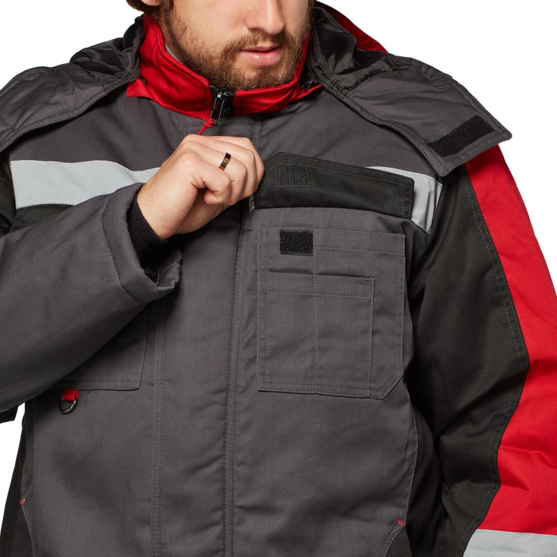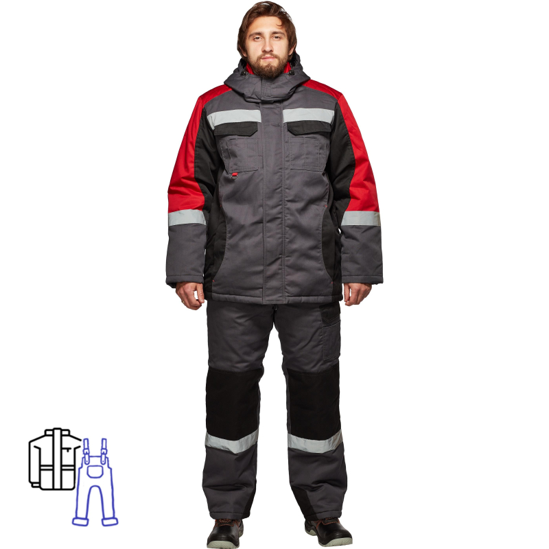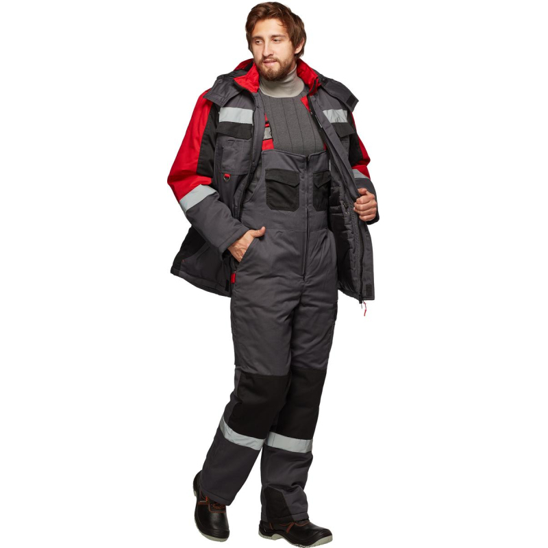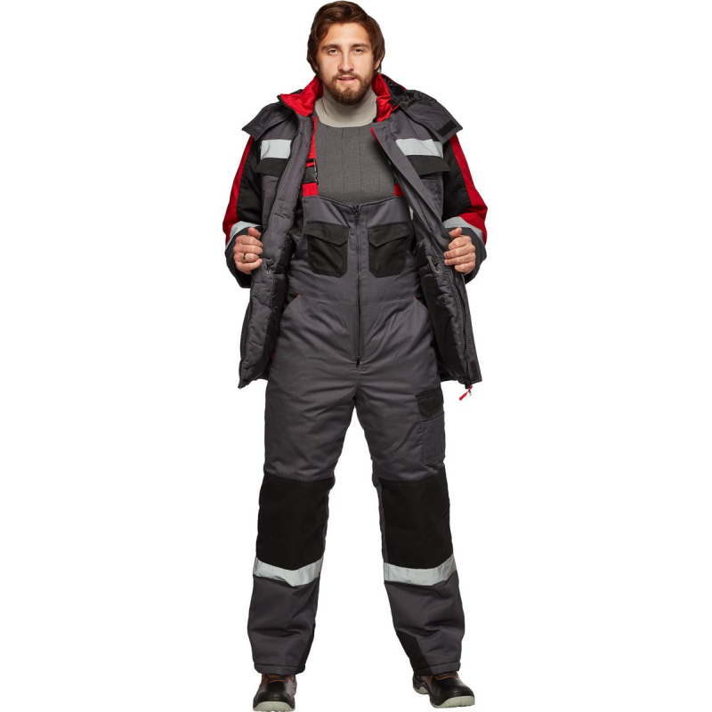 Костюм рабочий зимний мужской Формула с СОП (размер 56-58, рост 170-176). Состоит из куртки и полукомбинезона. Состав ткани: "Орион-1" смесовая с водоотталкивающей отделкой (65% полиэстер, 35% хлопок, плотность 240 г/кв.м.). Подкладка: ветрозащитная (100% полиэфир, плотность 60 +/- 5 г/кв.м.). Утеплитель: полотно высокоизвилистое, силиконизированное "Аляска", плотностью 450 г/м2 (основа) и 300 г/кв.м (руки/ноги). Ветрозащитная планка с застежкой на ленту-контакт. Воротник стойка, капюшон утепленный, съемный. Фигурная линия низа и регулировка ширины куртки по талии. Полукомбинезон утепленный, с центральной застежкой на тесьму "молния". Эластичная резинка по талии спинки. Полукомбинезон с различными многофункциональными карманами. В костюме используется светоотражающая полоса 50 мм. Усилительные накладки в области колен по низу шаговых швов. Внутренний трикотажный манжет. Отрасли: ЖКХ, строительство, легкая и тяжелая промышленности, логистика. ГОСТ 12.4.303. ЗАКЛЮЧЕНИЕ МИНПРОМТОРГА РФ ВЫ МОЖЕТЕ СКАЧАТЬ ЗДЕСЬ: