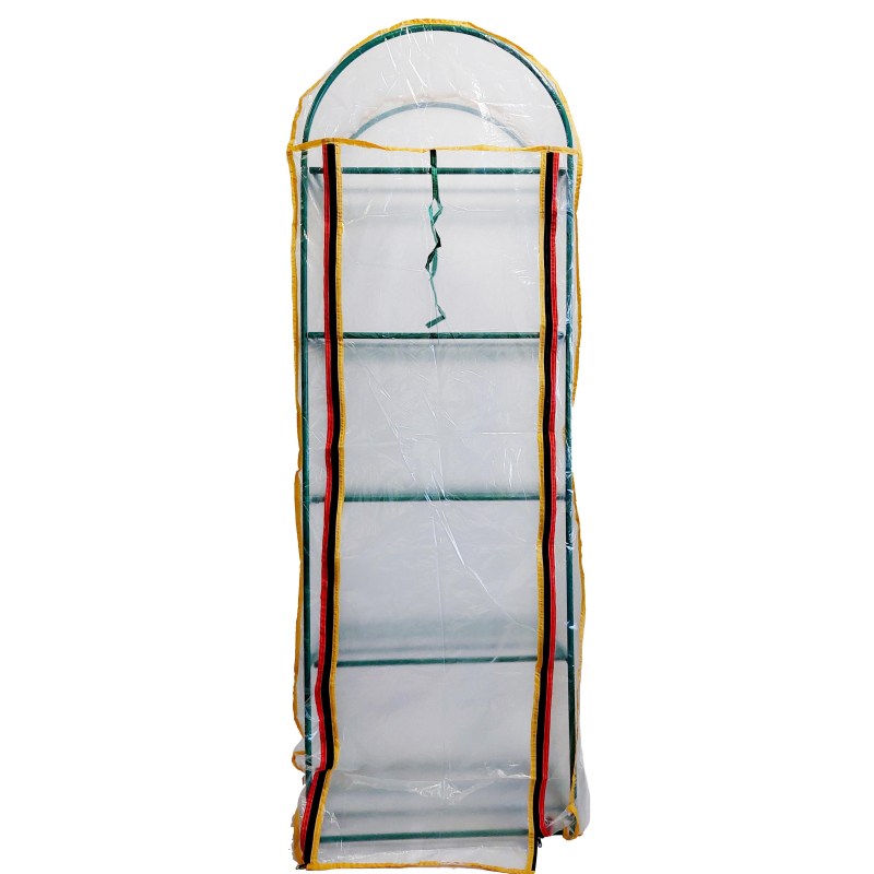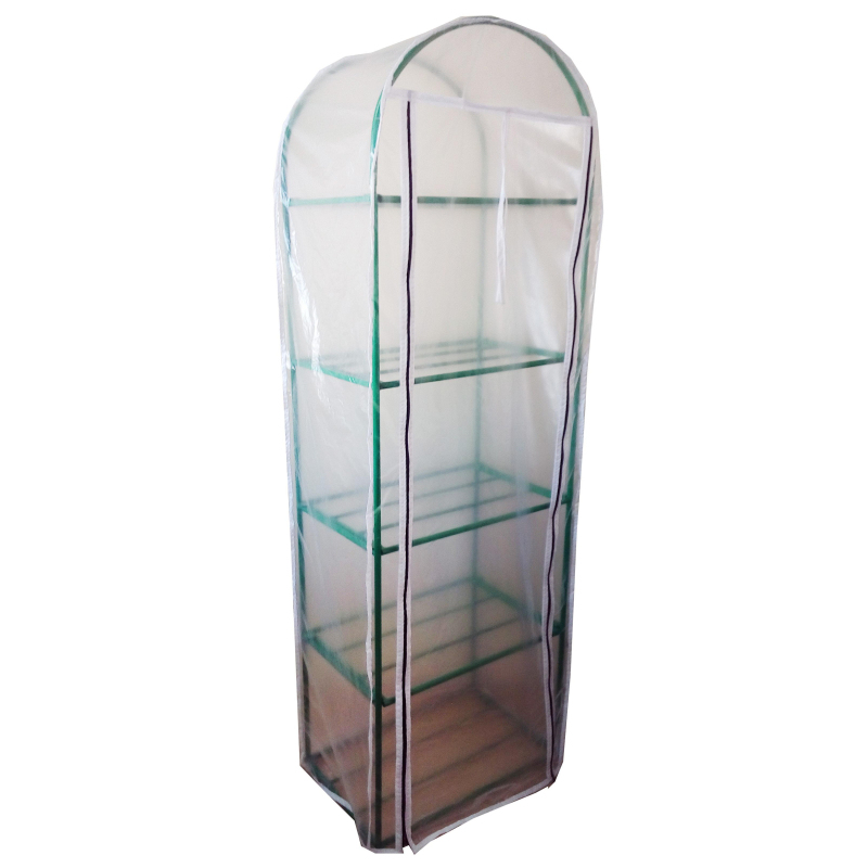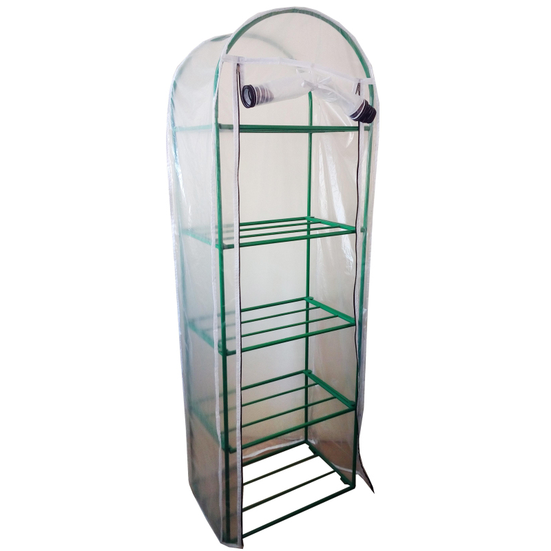 Парник для балкона сделан из металлической трубы, каркас окрашен порошковой краской, чехол на парник изготовлен из п/э пленки, вшиты молнии. Парник имеет 5 полок для ящиков или горшков. Предназначен для выращивания рассады. Размер: 41х66х196 см.