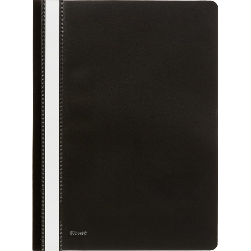 Скоросшиватель используется для хранения различного рода документации, для ведения документооборота, систематизации договоров, других важных бумаг. Папка изготовлена из гладкого пластика. Толщина верхнего прозрачного листа - 130 мкм, нижнего цветного листа - 180 мкм. С прозрачной верхней обложкой. На лицевой стороне находится карман с белым бумажной полосой для указания содержания, вместимость - 100 листов стандартной плотности. Цвет- черный