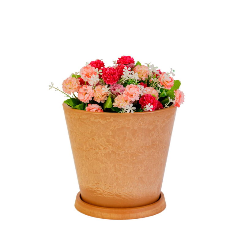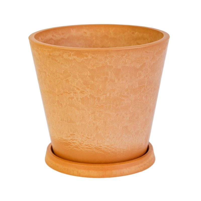 Горшок для растений бренда GreenShip Терракота цвет оранжевый с оригинальной текстурой под камень украсит любой интерьер. Изготовлен из прочного специализированного пластика в состав которого входит битый камень, древесная мука с полимерами, что делает его ударопрочным, устойчивым к перепадам температуры от 45 до +65 градусов по Цельсию (мороза не боится и на солнце не выгорает). Укомплектован поддоном. Учитывая, что горшок дышащий подходит для любых небольших растений, которым будем комфортно расти в таких условиях. Товар сохраняет свой эстетичный внешний вид на протяжении всего срока службы. Подлежит вторичной переработке.- Материал: пластик.- Цвет: оранжевый.- Форма: круглая.- Объем горшка: 3 л.- Высота: 18 см.- Диаметр верха: 20 см.- Диаметр дна: 13.5 см.