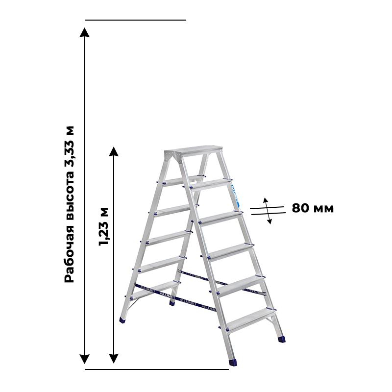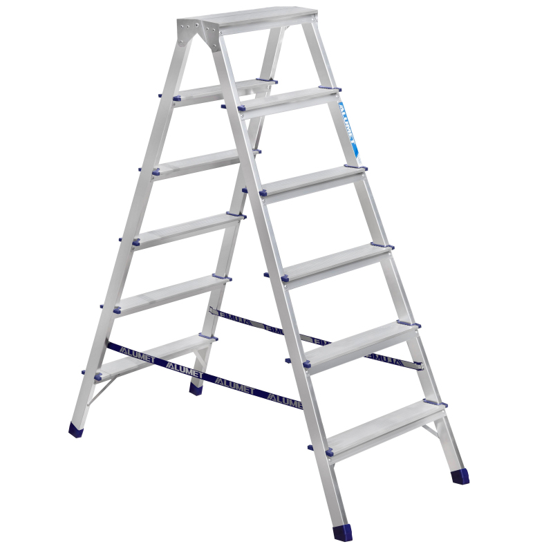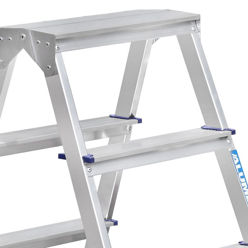 Двухсторонняя алюминиевая стремянка AD7206 имеет ступени с двух сторон и оснащена пластиковыми противоскользящими опорами, которые делают ее использование более безопасным. Ступени имеют рифленую поверхность. Конструкция модели позволяет использовать ее для работ, требующих участия двух человек. Изделие отличается высокой устойчивостью и универсальностью: стремянка может применяться как для поклейки обоев или монтажа электропроводки, так и для опрыскивания деревьев или сбора урожая в саду. Лестница-стремянка способна выдерживать нагрузку до 150 кг, отличаясь при этом простотой эксплуатации, удобством хранения и транспортировки. Внешний вид и/или характеристики товара могут быть изменены производителем в соответствии с производственным процессом.