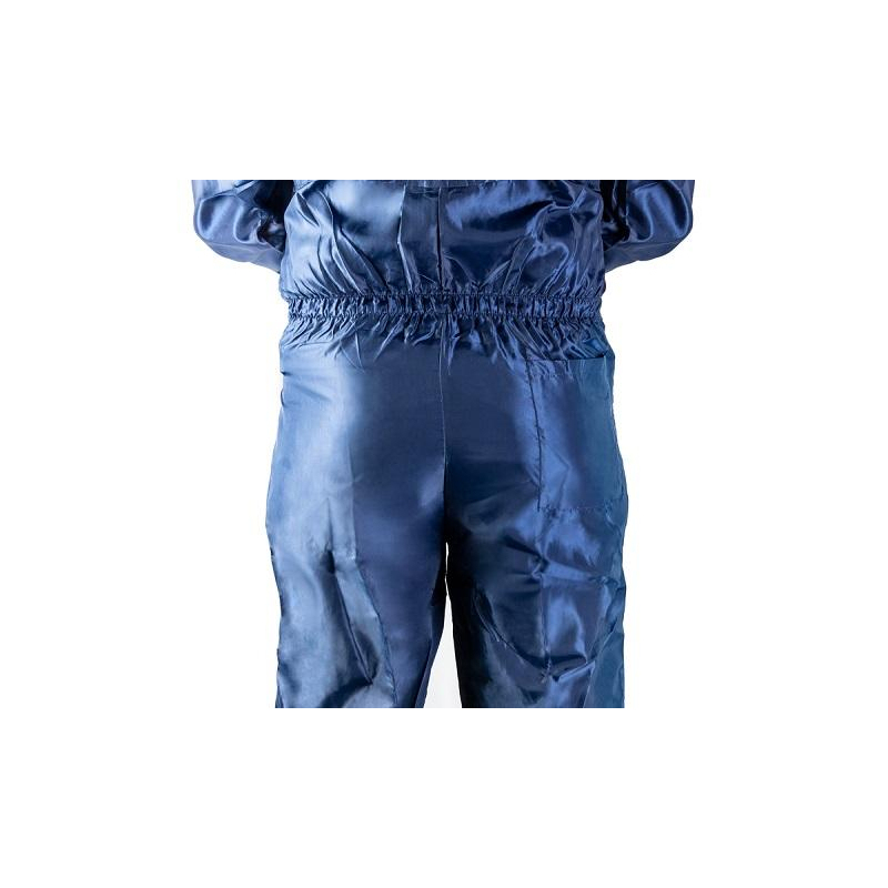 Комбинезон многоразовый с капюшоном синий Jeta Safety JPC75b предназначен для маляров. Состав ткани 100% полиэфир, плотность 55 г/кв.м. Комбинезон обладает антистатическими свойствами. Вентиляционные карманы на спине и вентиляционные вставки в области подмышечных впадин. На комбинезоне имеются внутренний нагрудный карман и внешний карман сзади на штанах. Молния с двумя бегунками с защитной планкой. Лицевой вырез капюшона, пояс, запястья и щиколотки стянуты эластичным шнуром. Защитные свойства: Пн (от нетоксичной пыли), Пм (от мелкодисперсной пыли), Эс (от электростатических зарядов, полей). Размер 56-58, XXXL.
